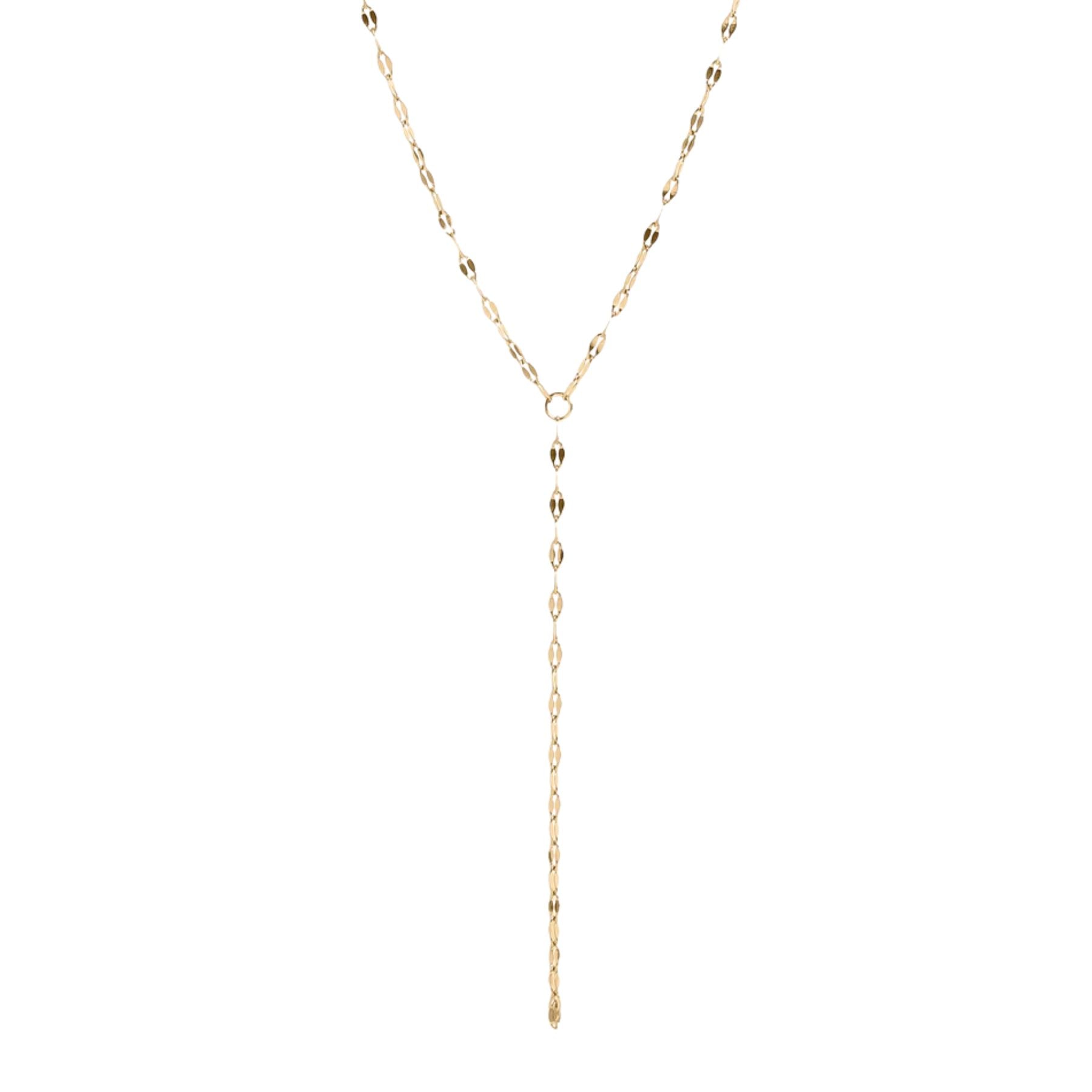 Add a touch of elegance to any outfit with this Lip Chain Lariat Necklace.  Whether you wear this necklace by itself or layer it with other pieces for a more dynamic look, it brings versatility and a modern edge to any ensemble.