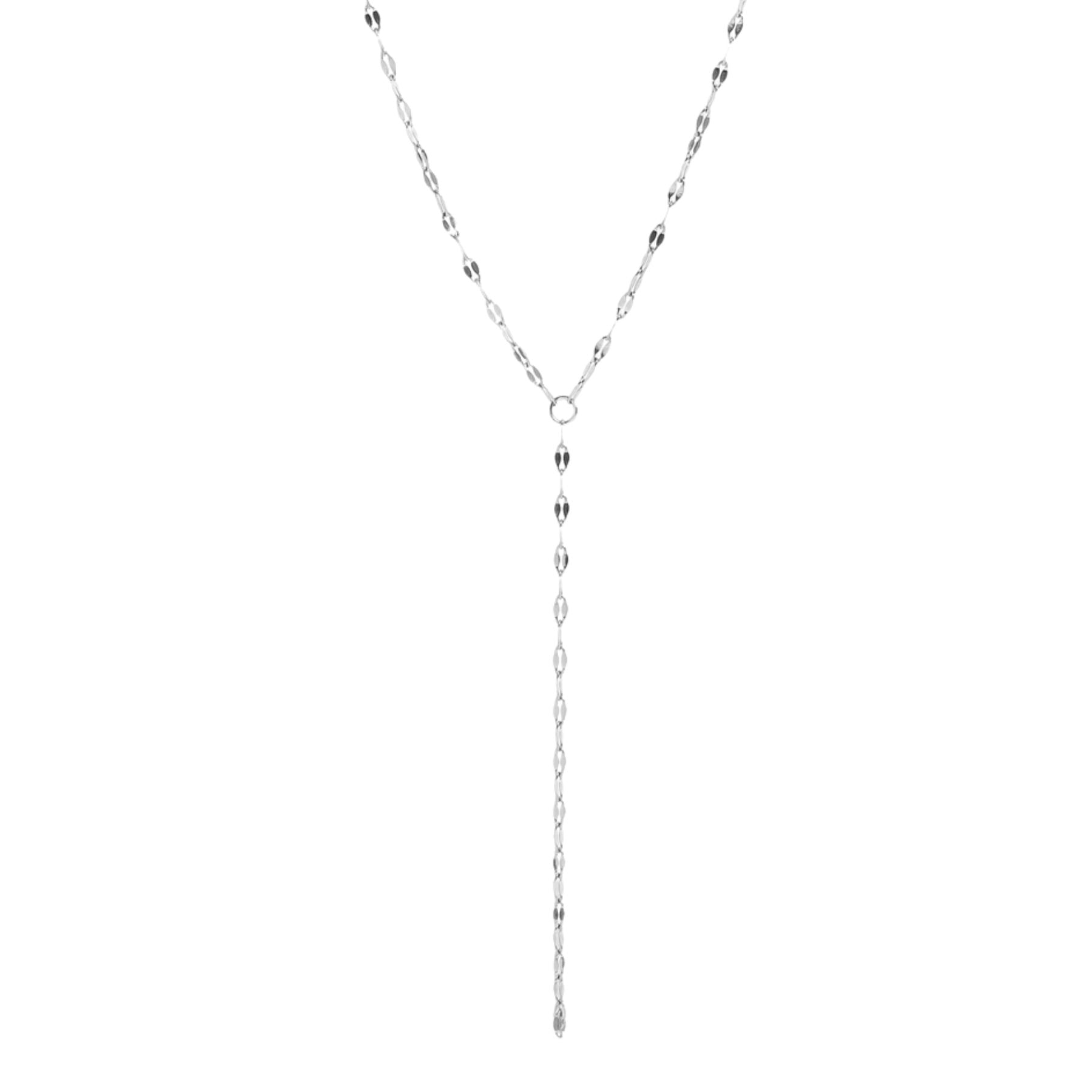 Add a touch of elegance to any outfit with this Lip Chain Lariat Necklace. Whether you wear this necklace by itself or layer it with other pieces for a more dynamic look, it brings versatility and a modern edge to any ensemble.