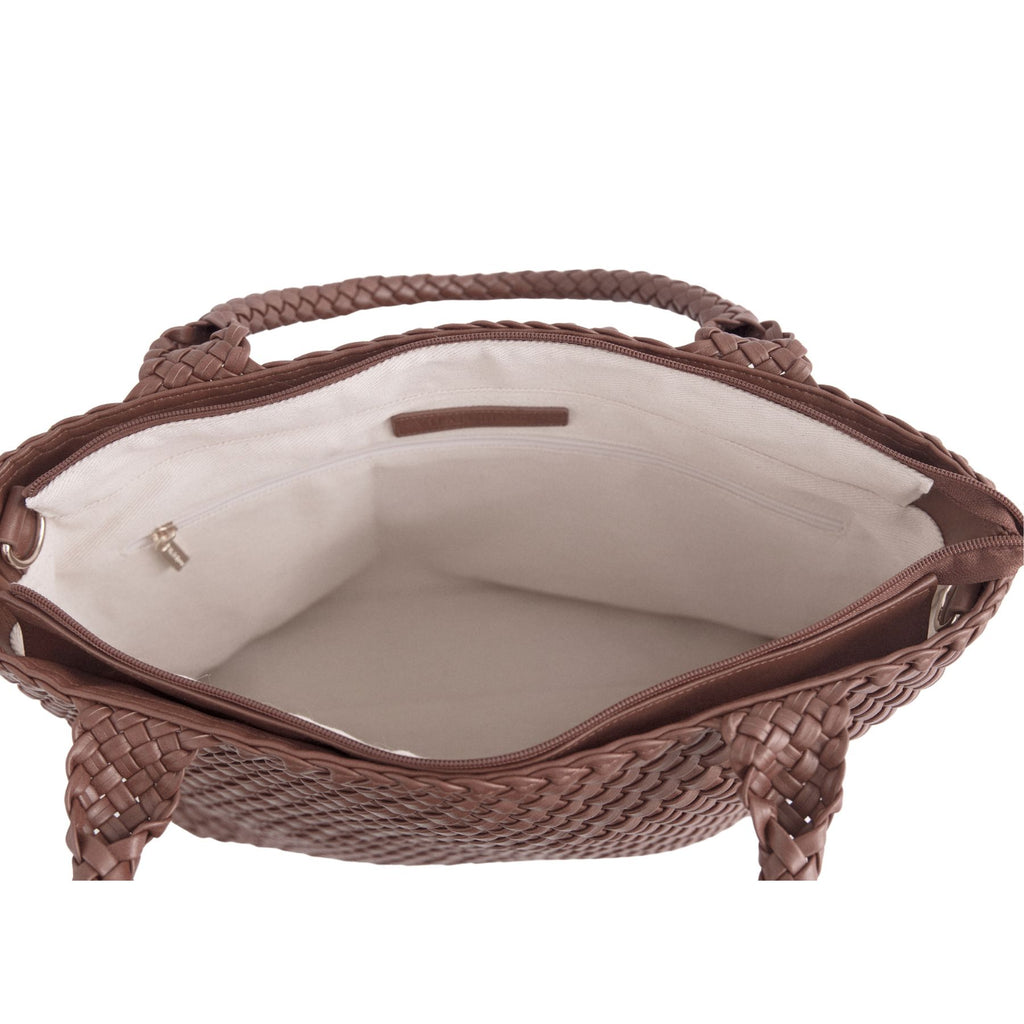 A spacious interior with a natural cotton lining keeps your essentials organized, while sturdy leather handles and subtle metal accents add refined durability. Whether you’re headed to the market, the office, or a weekend escape, the Woven Tote's lightweight feel and elevated aesthetic make it your new go-anywhere favorite.